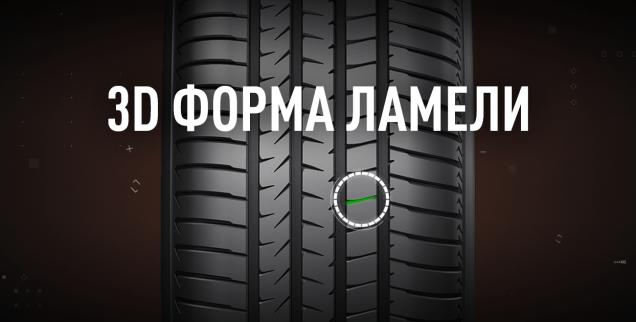 3D форма ламели уменьшает деформацию блока протектора, благодаря чему шина становится более износостойкой.